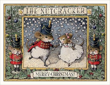 表の絵は,くるみ割り人形の絵で、星降る夜に二人が踊っているところです。今にも音楽が聞こえてきそうな楽しそうな絵です。横には兵隊さんたちも立っていますよ。